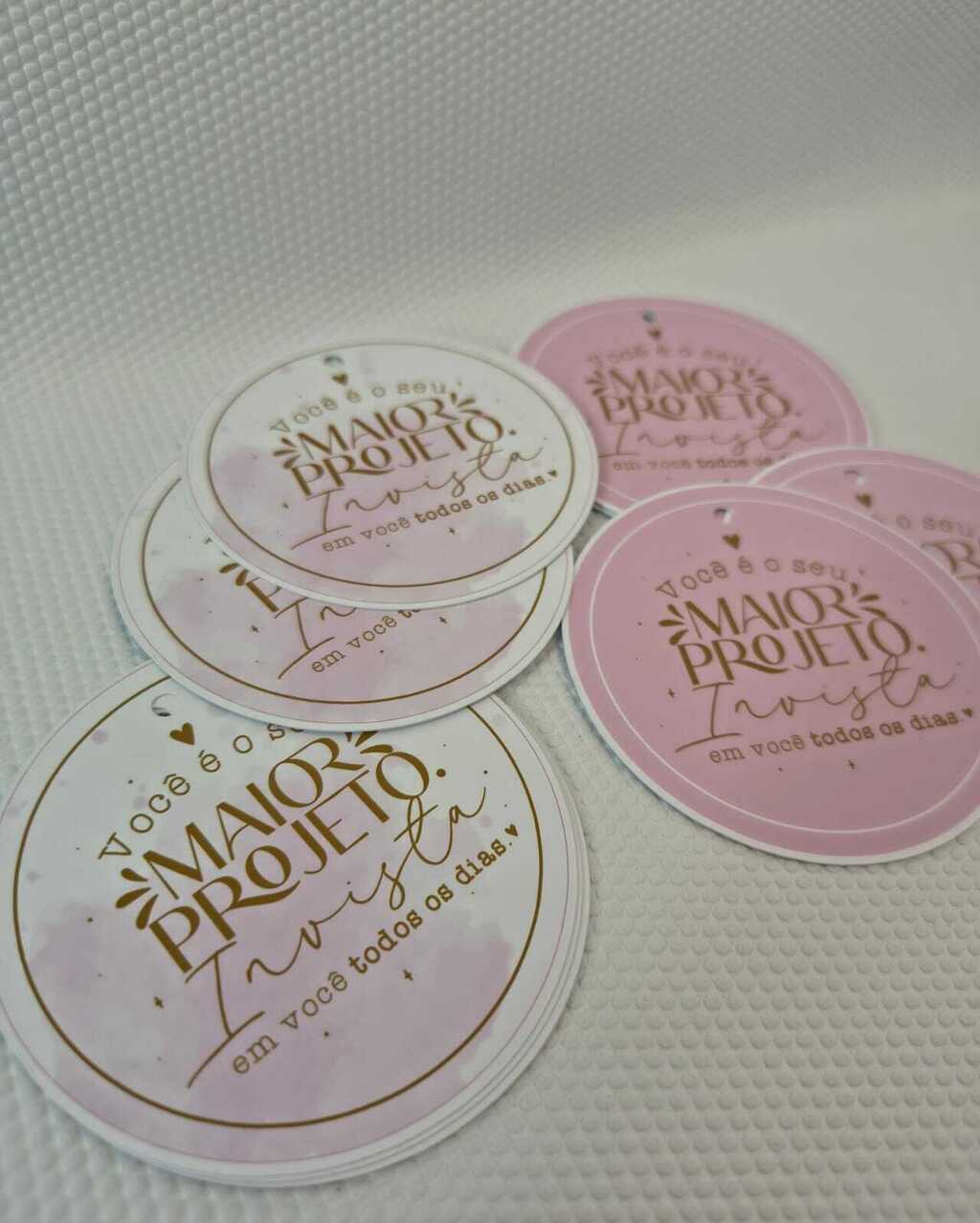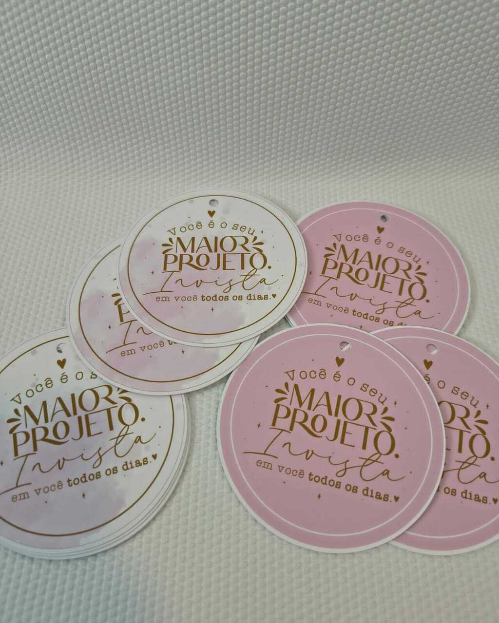 Tag furo para sacolas - Unboxing - Brilho - Projeto - Kit com 12 unidades